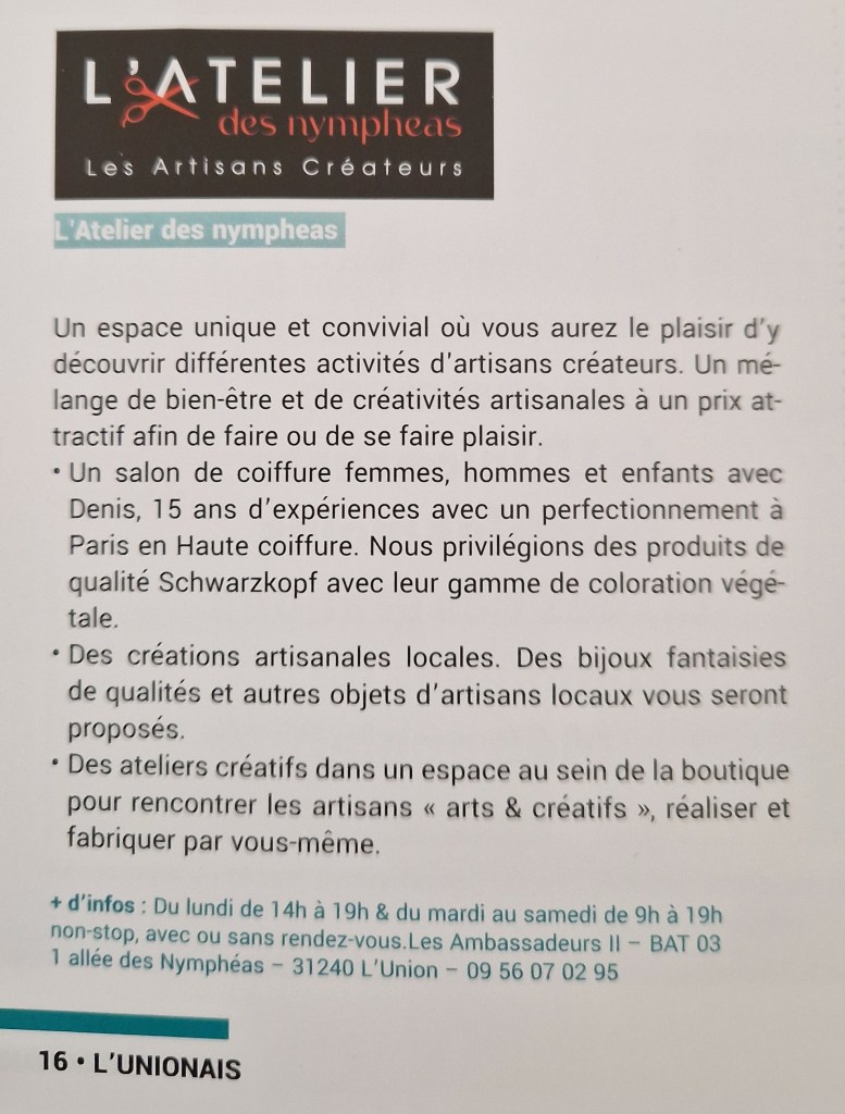 Parution dans L’Unionais de Mai 2024. Annonce d’ouverture au 2 Mai 2024