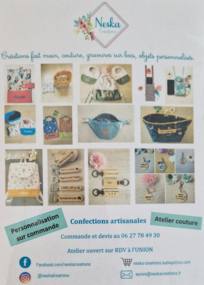 Vous cherchez une idée ou un cadeau personnalisable et à petit prix. Venez découvrir les jolies créations riches en couleur de Neska créations à l’atelier des Nymphéas. Stylo, porte clés, décapsuleur, sacs à dos, bananes, pochettes, chouchous, barrettes…..